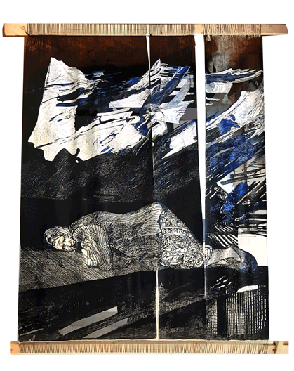 2023 tapestry -270 cm x 220 cm / private collection (detail) / 2024 – Award of the ASSOCIATION of HUNGARIAN FINE and APPLIED ARTS for Mural and Spatial Textile Art Category, at the 8th International Textile Triennial in Szombathely-Hungary